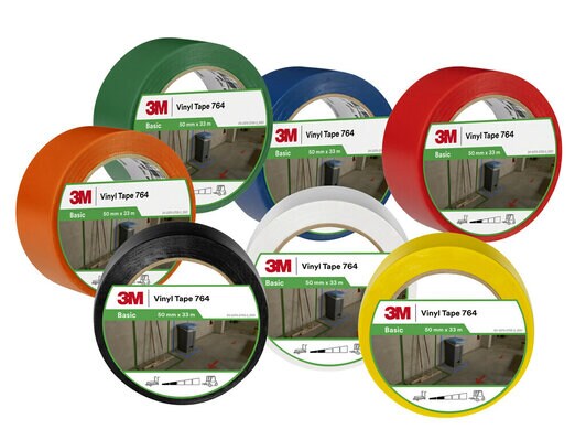 Universelles Vinylband 3M 764i zur Farbkennzeichnung, Markierung oder einfachen Sicherheitskennzeichnung. Passt sich vielen Arten von unregelmäßigen Oberflächen an und hat eine gute Soforthaftung.