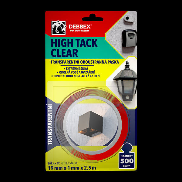 Doppelseitiges Klebeband HIGH TACK CLEAR mit extra starker Acrylat-Kleberschicht. Haftet sehr stark auf einer Vielzahl von Untergründen. Der transparente Klebstoff und die sofortige volle Haftung beschleunigen die Montage und Inbetriebnahme des geklebten Gegenstands.