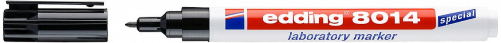 Hitzebeständiger und frostbeständiger Marker Edding 8014 wird für Laboreinsatz empfohlen. Beständig gegen Temperaturen im Bereich von -183 °C bis +500 °C und geeignet für Beschriftung von glatten und transparenten Oberflächen. Die Tinte ist schnelltrocknend, wischfest, abriebfest, lichtbeständig und kommt ohne zugesetztes Toluol/Xylol aus.