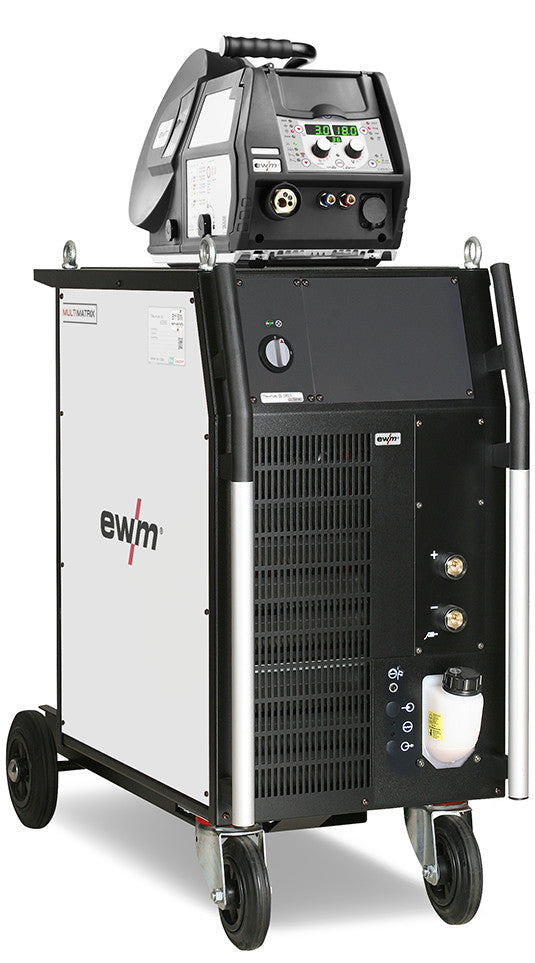 - Hochpräziser, starker 4-Rollen-Drahtvorschub EWM eFeed für sicheren Vorschub aller Voll- und Fülldrähte