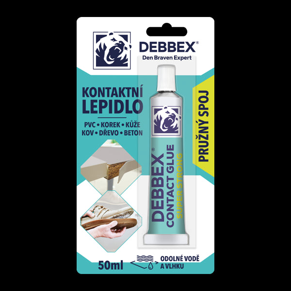 Einkomponenten-Lösungsmittelkleber mit schneller Trocknung. Der Kleber ist in einer 50 ml Taschenversion erhältlich und kann im Haushalt, in der Garage oder im Garten verwendet werden. Er eignet sich besonders zum Kleben von Textilien und Lederwaren. Außerdem klebt er PVC, Kork, Holz, Leder, Metall und Beton.