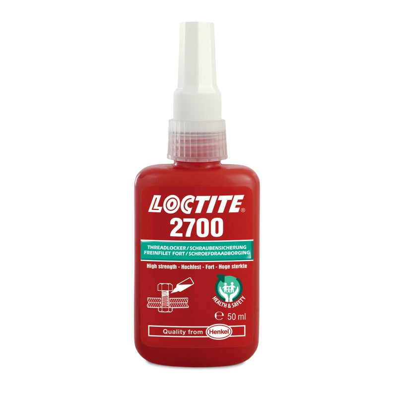 Loctite 2700 ist ein sehr starker Gewindesicherer, der verwendet wird, um eine Gewindeverbindung gegen selbstständiges Lösen zu sichern. Gewinde lösen sich vor allem durch Vibrationen und Stöße, was in vielen Fällen gefährlich sein kann. Der hochfeste Gewindesicherer Loctite 2700 verhindert das selbstständige Lösen. Zudem ist er hoch hitzebeständig bis zu 150 °C und widersteht auch Chemikalien. Nach dem Auftragen erreicht er bereits nach 5 Minuten Handfestigkeit und härtet vollständig aus. Wir empfehlen, Loctite 2700 nur dort zu verwenden, wo keine demontierbare Verbindung erforderlich ist.