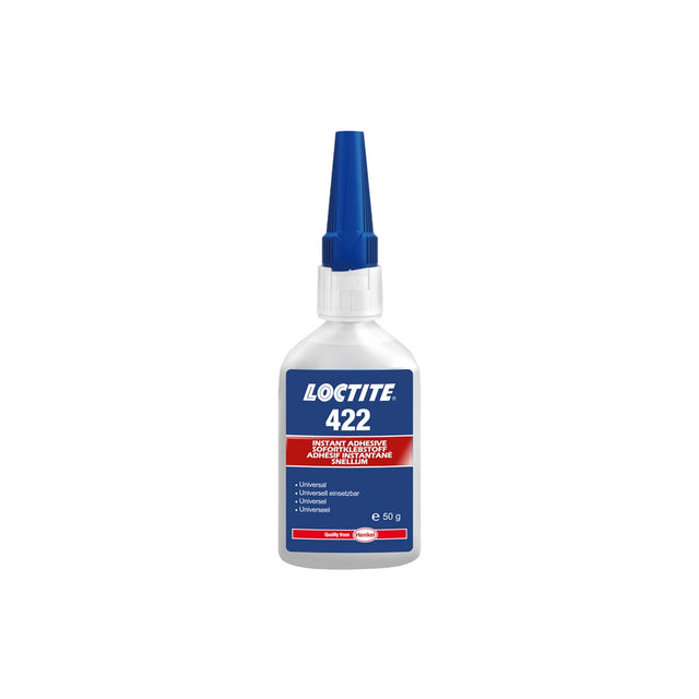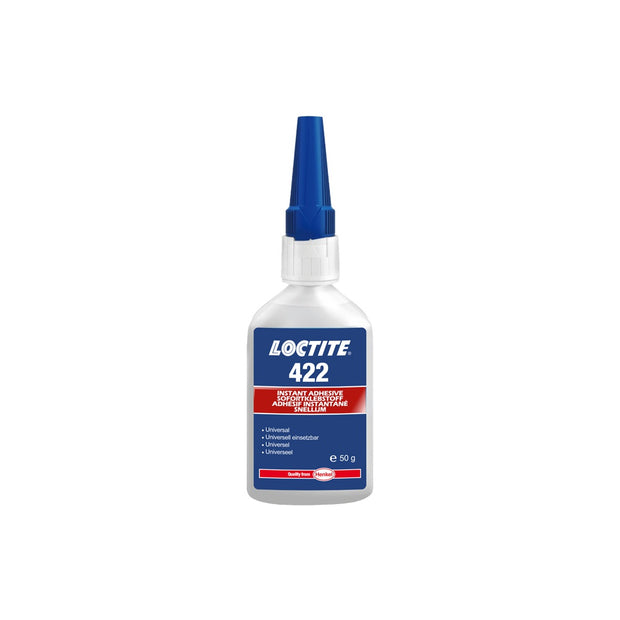Loctite 422 ist ein Sekundenkleber, der für allgemeine Klebearbeiten bestimmt ist und schnelles Kleben einer breiten Palette von Materialien ermöglicht, einschließlich Metallen, Kunststoffen und Elastomeren. Er klebt in einem dünnen Spalt innerhalb von Sekunden. Loctite 422 ist beständig gegen Benzin und Motoröle.
