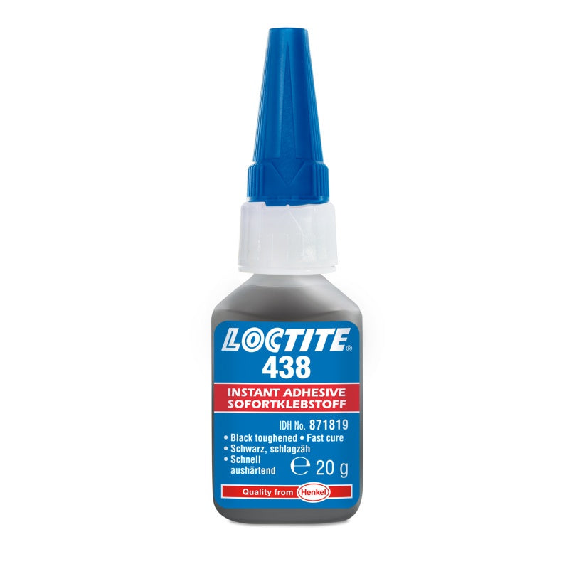 Der Sekundenkleber Loctite 438 ist ein spezielles, mit Gummi gefülltes, sehr zähes Produkt, das nach dem Aushärten vorteilhafte Eigenschaften aufweist. Während andere Sekundenkleber Vibrationen und Stöße nicht gut vertragen, da sie zwar sehr stark, aber nicht flexibel sind, ist Loctite 438 eine Ausnahme. Der Kleber ist nach dem Aushärten wirklich flexibel und kann daher sehr gut Vibrationen, Stößen und Abblättern oder Rissen widerstehen – nach dem Aushärten bleibt er während seiner gesamten Lebensdauer stabil. Die Handhabungsfestigkeit mit Loctite 438 wird in 10 Sekunden erreicht, anschließend härtet er in der Klebefuge ohne Luftzutritt aus. Nach vollständiger Aushärtung ist die Verbindung völlig transparent ohne unerwünschte Verfärbungen.
