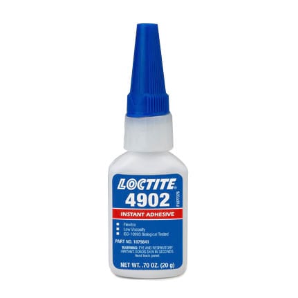 LOCTITE 4902 ist ein hochflexibler Sekundenkleber, der für die Verklebung von medizinischen Geräten entwickelt wurde. Er ermöglicht die Verwendung unterschiedlicher und undurchsichtiger Materialien zur Verbesserung der Eigenschaften des hergestellten Geräts. LOCTITE 4902 bietet deutlich bessere Eigenschaften im Vergleich zu herkömmlichen Sekundenklebern, einschließlich Festigkeit in einer flexiblen Klebeverbindung und hervorragender Dichtfähigkeit. Alle weiteren Eigenschaften von Cyanacrylaten bleiben erhalten, einschließlich hoher Festigkeit, schneller Aushärtung und einfacher Anwendung.