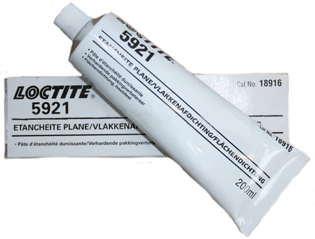 Loctite 5921 ist eine hochwertige, schnell trocknende, dunkelbraune Paste, die als Flächendichtung für Motoren oder Getriebe verwendet wird, aber auch als Gewindedichtmittel für Rohre, Fittings und Schraubverbindungen für Spalten über 0,25 mm. Loctite 5921 ist ein Kunstharz mit einer Viskosität ähnlich der von Melasse, das nach der Aushärtung (Verdampfung des Lösungsmittels) einen elastischen Film bildet.