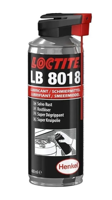 LOCTITE® LB 8018 ist ein transparenter, superpenetrierender Öl-Spray in einer Aerosoldose auf Basis einer Mischung aus Mineralölen und Zusätzen. Das Produkt fließt schnell zwischen verrosteten und korrodierten Teilen. Aufgrund seiner außergewöhnlichen Penetrationseigenschaften eignet es sich auch zum Lösen von Teer, Fett, Schmutz und anderen Kohlenstoffablagerungen, die einen dünnen Film hinterlassen, der schmiert und Korrosion verhindert. LOCTITE® LB 8018™ ist speziell als superpenetrierendes Öl zum Entfernen von verrosteten oder eingefrorenen Muttern, Schrauben, Bolzen, Fittings und anderen Verbindungselementen sowie Metallteilen in Automobil- und Industrieanlagen konzipiert. Es wird auch zur Reinigung von Teilen vor dem Schmieren und als leichtes Schmiermittel und Korrosionsinhibitor empfohlen.
