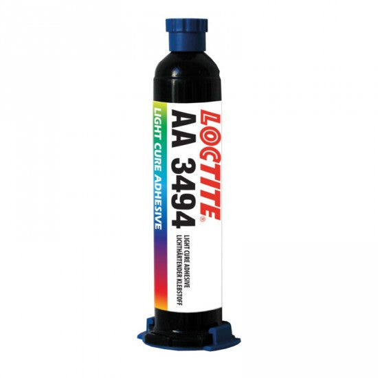 Der Klebstoff Loctite AA 3494 gehört zu den sogenannten UV-Klebstoffen und härtet somit durch Licht aus. Die chemische Basis ist Acrylat, wodurch sehr gute Klebeergebnisse erzielt werden. Die Anwendung des UV-Klebstoffs Loctite AA 3494 ist schnell und einfach, jedoch ist Vorsicht wegen der schnellen Aushärtung geboten – die Handfestigkeit wird bereits nach 8 Sekunden erreicht, was eine extrem kurze Zeit im Vergleich zu anderen Klebstoffen ist. Nach dem Aushärten ist der Klebstoff sowohl chemikalienbeständig als auch resistent gegen Feuchtigkeit und Temperaturen bis +120 °C. Die Verbindung ist nach vollständiger Aushärtung auch stoßfest. Loctite AA 3494 wird für die Verwendung bei sichtbaren Verbindungen und Dichtungen empfohlen, zum Beispiel bei Glas oder anderen vorwiegend dekorativen Materialien.