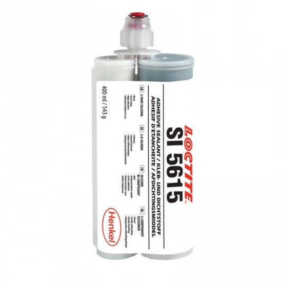 Sehr schnell aushärtendes zweikomponentiges Silikon Loctite SI 5615. Es zeichnet sich durch hervorragende Haftung auf Glas, Glaskeramik Ceran und verschiedenen Metallarten aus. Kurzzeitig widersteht es auch erhöhten Temperaturen über 180 °C.