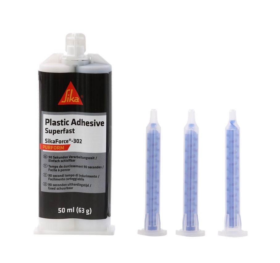 SikaForce®-302 (Purform®) ist geeignet für die Reparatur von Kunststoffteilen in Autowerkstätten, wie beschädigte Stoßfänger, das Kleben von Kunststoffteilen und Halterungen, die Wiederherstellung von Kunststoffbefestigungen oder das Füllen ungenutzter Sensorlöcher und kleiner Öffnungen. Dieses Produkt ist nur für professionelle Anwender geeignet. Vor der Anwendung sind Haftungstests unter aktuellen Bedingungen und auf den vorhandenen Oberflächen durchzuführen.