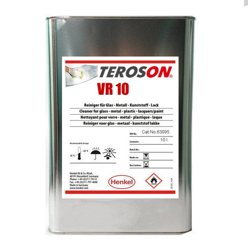 Teroson VR 10 (ersetzt VR 20) ist ein flüssiger, universeller Reiniger und Verdünner auf Basis von hydrierten Benzinen (ohne Aromazusätze und mit niedrigem n-Hexan-Gehalt). Das Produkt enthält keine chlorierten Kohlenwasserstoffe. Bei kurzfristiger Exposition beschädigt es nicht die im Automobilbereich verwendeten Lacke. Der Reiniger - FL verlangsamt nicht die Aushärtung von Kleb- und Dichtstoffen auf Polyurethanbasis.